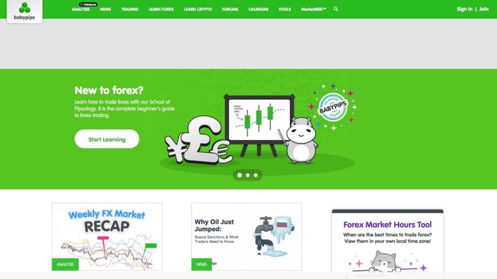 | BabyPips’ School of Pipsology | A free, easygoing guide | Go-at-your-own-speed lessons with a funny tone and quick tests. |