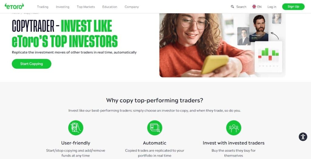 How it breaks things down: The platform works like a social media feed for finance. You can follow experienced traders, see their real-time portfolio moves, and read their commentary. With its “CopyTrader” feature, you can automatically mirror the trades of someone you want to learn from, turning their strategy into a live case study.